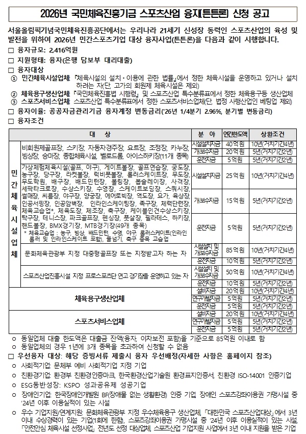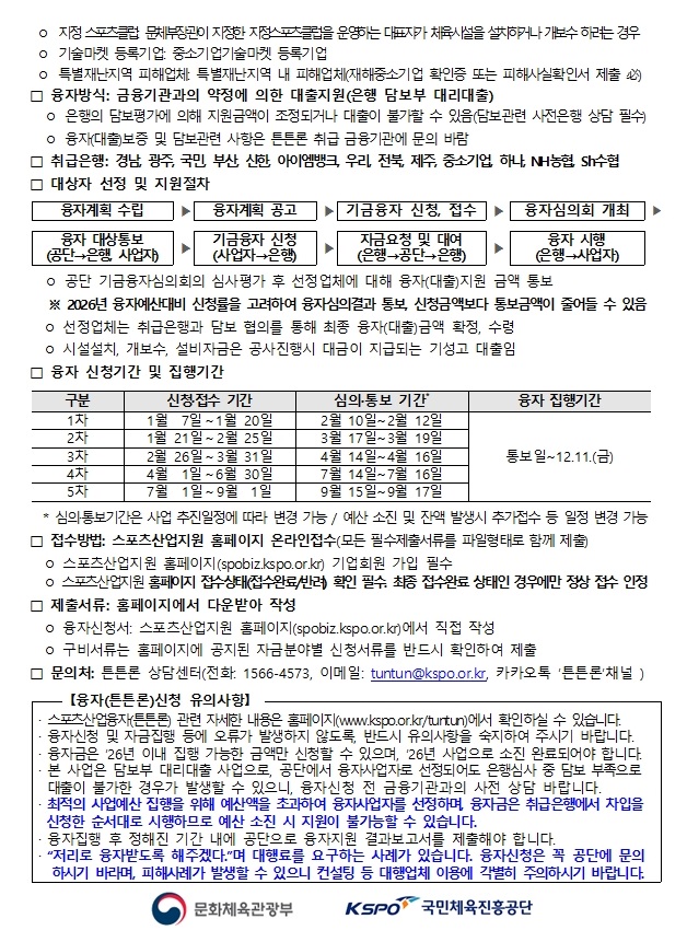 2026년 스포츠산업 융자 1차 접수기간은