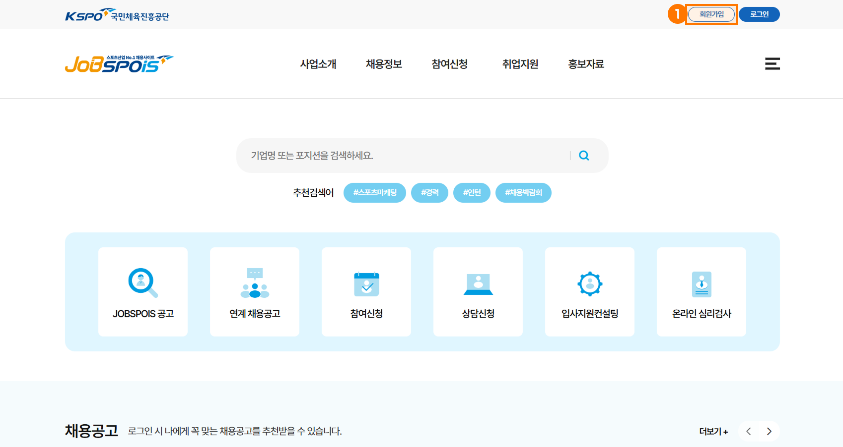 메인/서브화면 상단에 있는 [회원가입] 버튼을 클릭합니다.