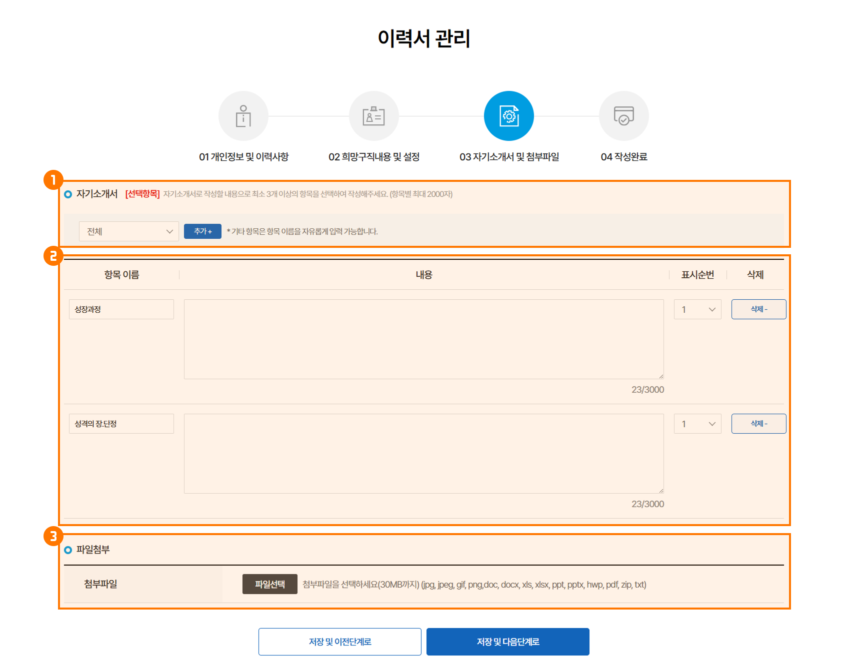 선택한 분야별 내용을 최대 2000자 이내로 등록합니다. - 3