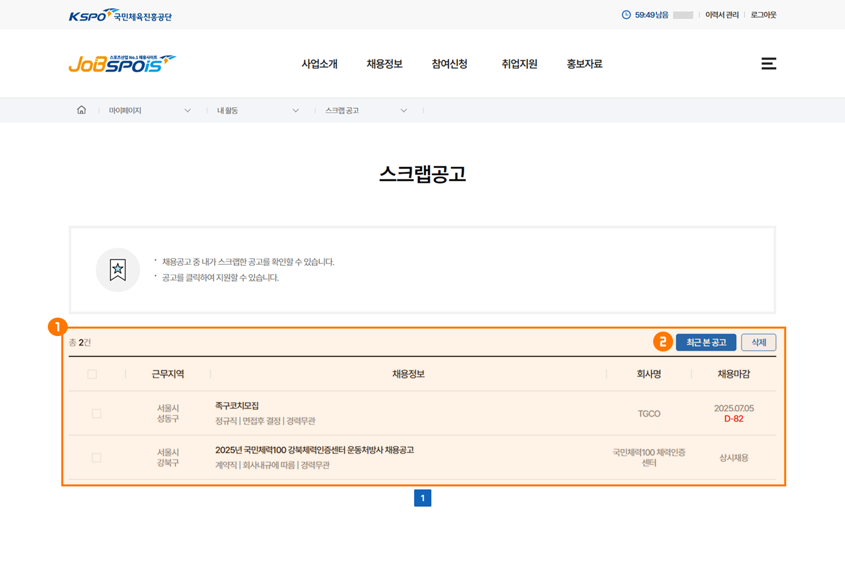 관심있는 채용 건을 스크랩한 목록입니다. - 2