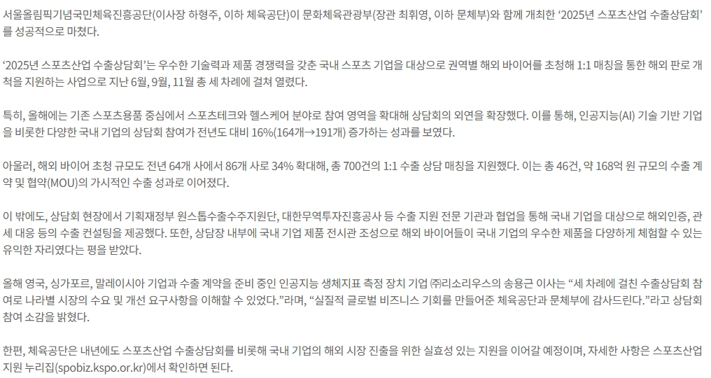 총 700건 수출 상담 지원, 168억 원 규모 수출 성과 달성